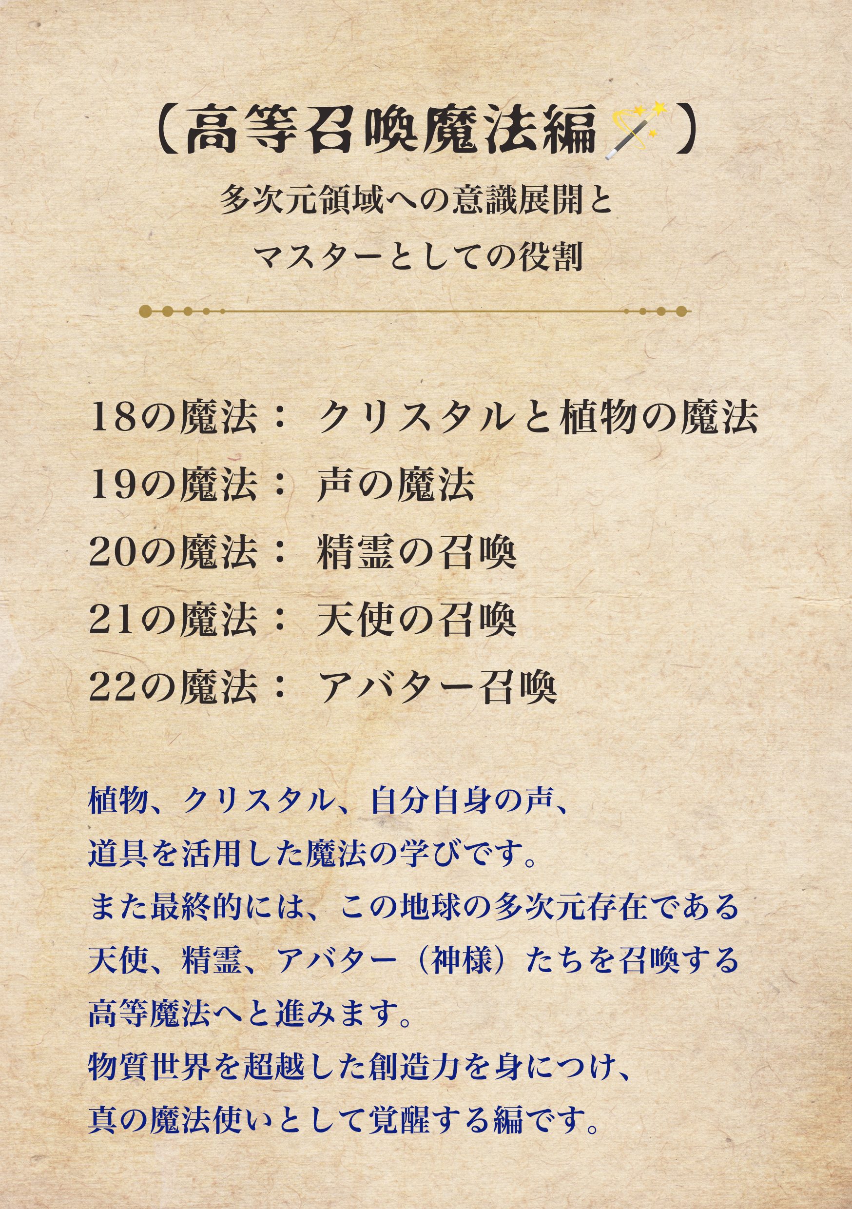 このグリモワールは、ただ読むだけの本ではなく、22段階の魔法の学びの旅として、体験できるように設計されています。
