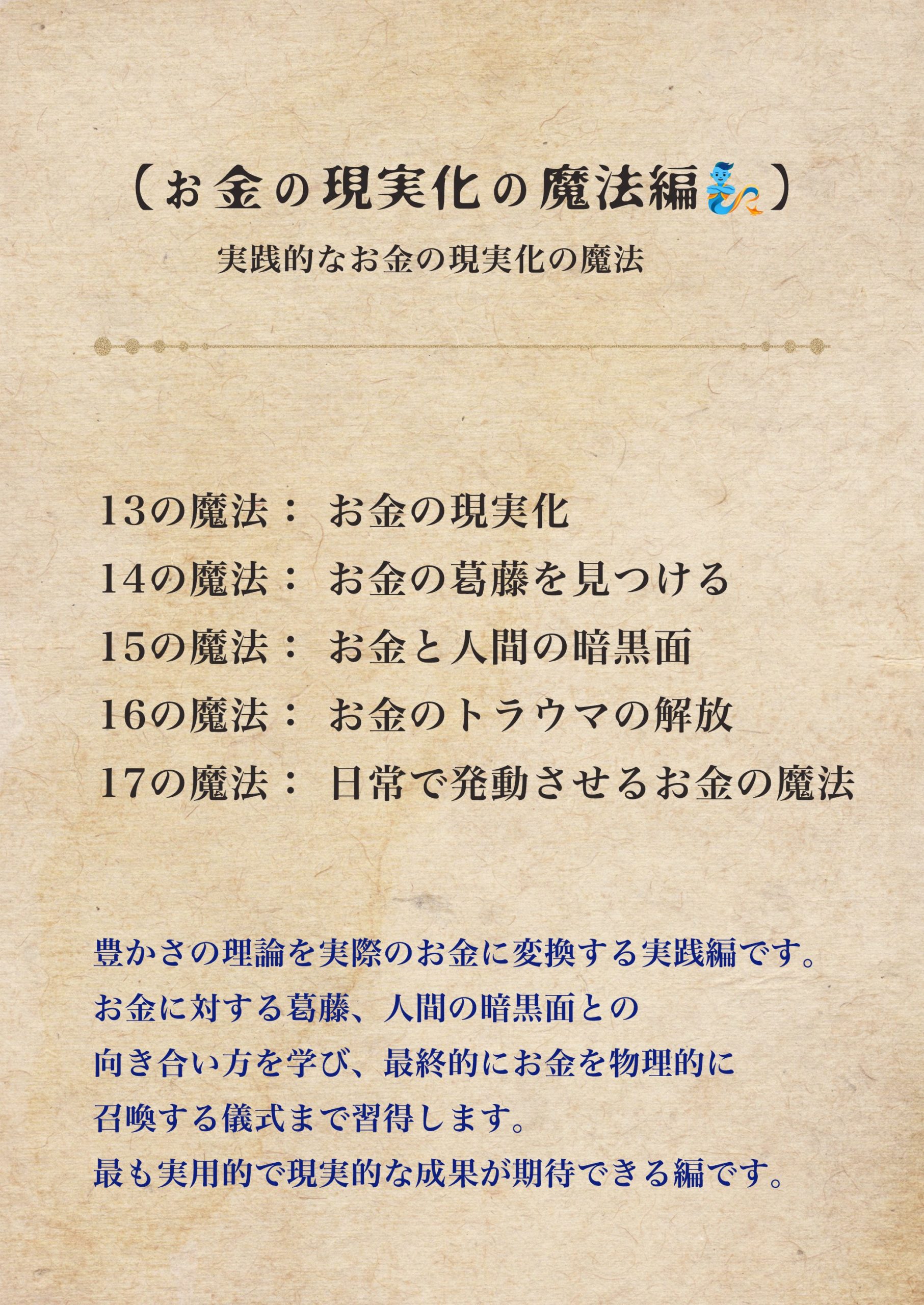 古代から伝わる『魔法の叡智』を、現代社会で活用できる実践的な形に昇華させた、豊かさの現実化メソッドです
